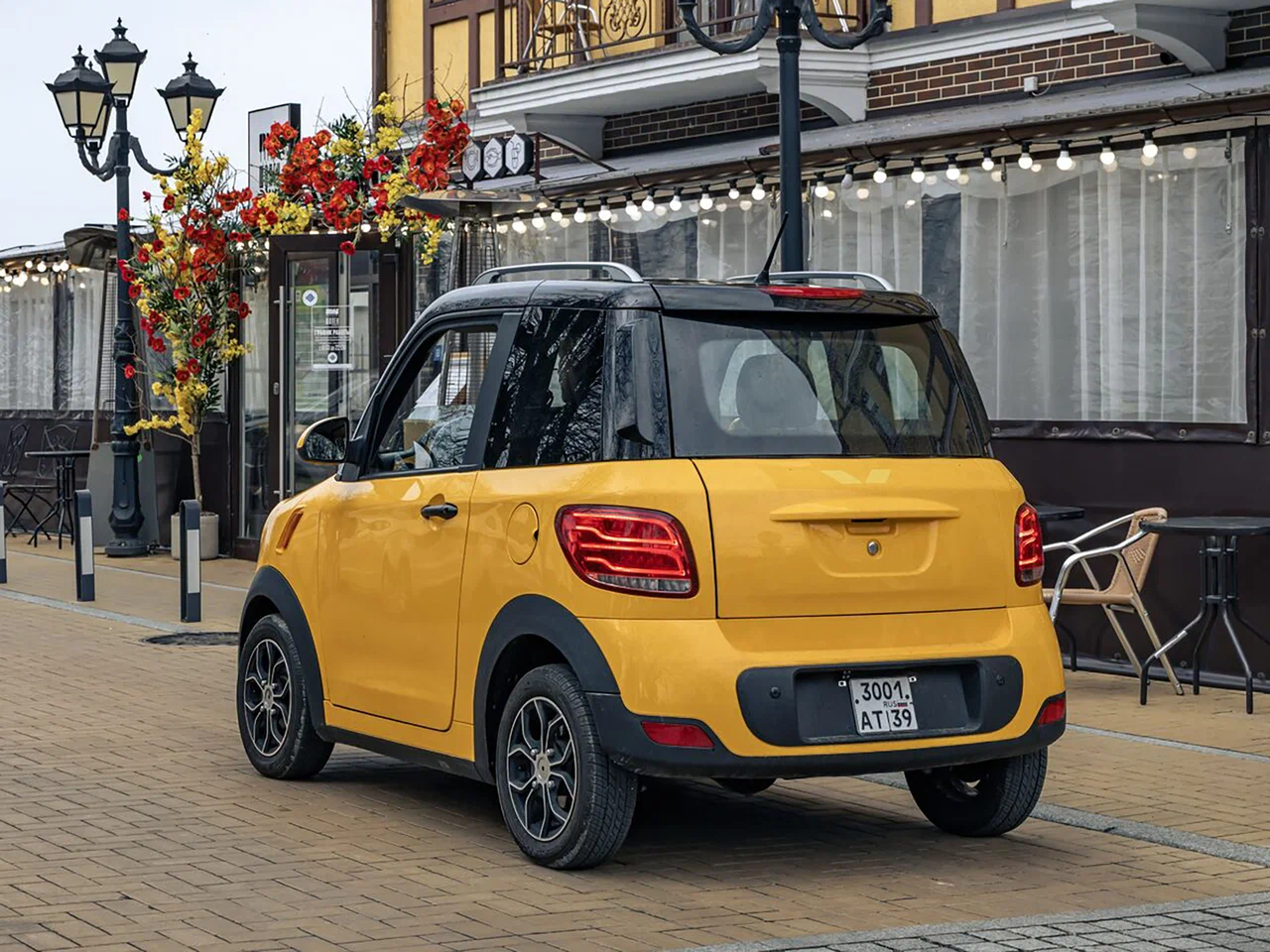 В длину машинка 2,8 метра, а высота 1,4 метра. То есть меньше российской «Оки». Электромобиль на одной полной подзарядке сможет преодолеть 100 километров. Удивительно, но в салоне установлен мультимедийный комплекс с дисплеем. А еще есть кондиционер.