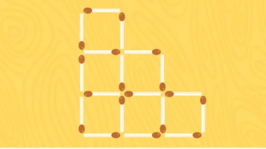 Смотрите на картинку: изображена лесенка из квадратов. Ваша задача — переставить спички так, чтобы в итоге осталось ровно 4 квадрата одинакового размера. Для этого нужно передвинуть всего 2 спички на новые позиции.