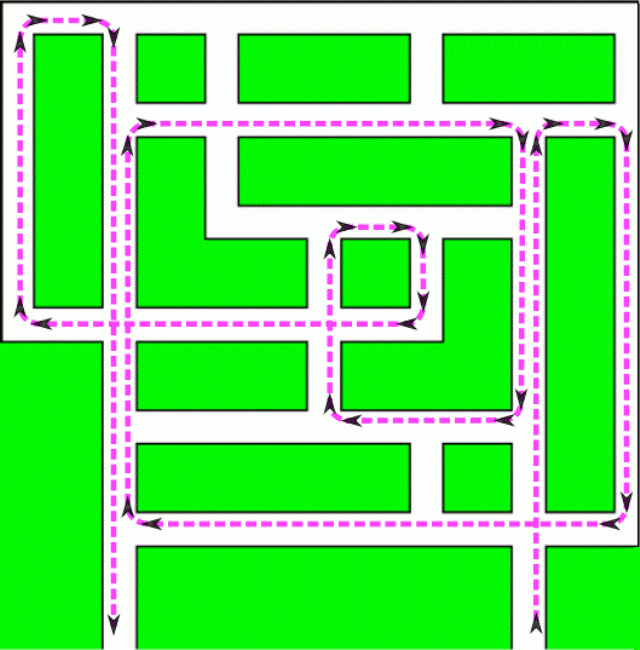 В чем сложность? В том, что есть условие. При прохождении лабиринта нельзя поворачивать налево.