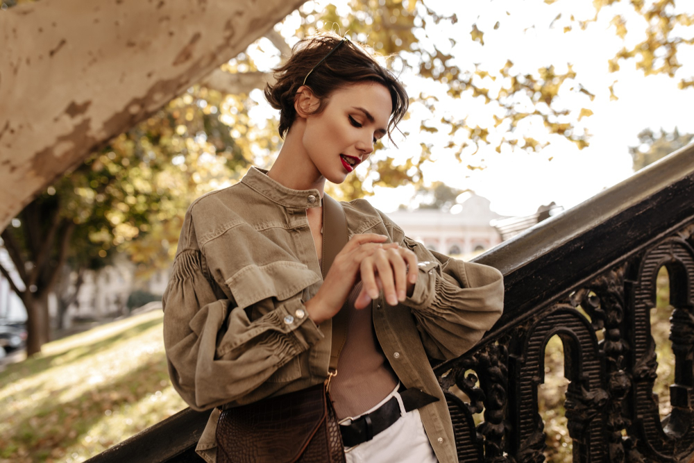 На бежевой гамме можно создать совсем не скучный образ. Попробуйте надеть молочный топ, пальто цвета латте и светлые брюки. Получится очень мягкий и солнечный образ. Для тепла накиньте объёмный шарф.