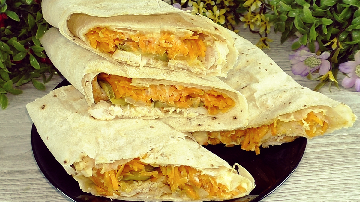 Количество ингредиентов выбираете сами на свой вкус. К тонкому лавашу подойдет любая начинка. Мы будет использовать куриное филе.