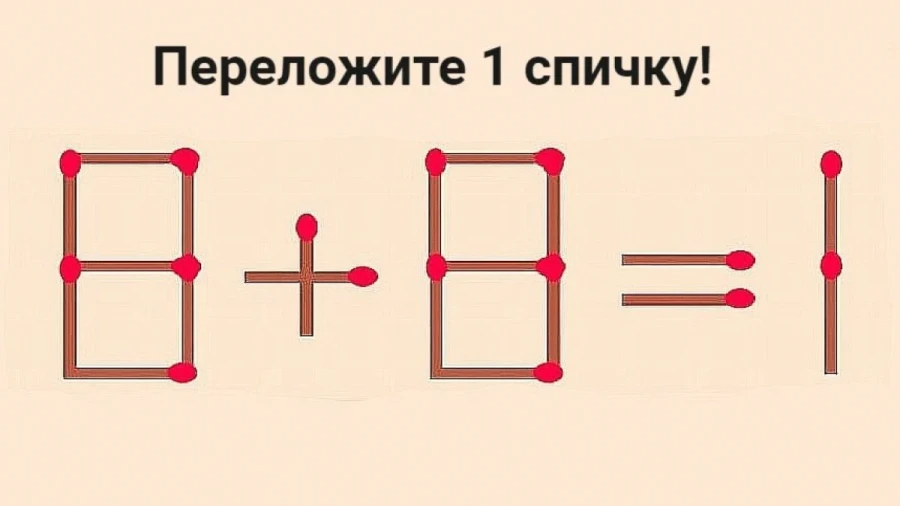 Давайте к одной такой задачке и перейдём. Перед вами равенство, которое нужно исправить, передвинув 1 спичку. Лучше постараться уложиться в 20 секунд.
