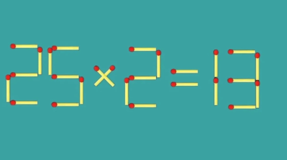 Если вам удалось одолеть нашу задачку, то поздравляем — продолжайте в том же духе. А теперь делимся ответом: вам нужно было всего лишь забрать одну спичку из знака умножения и перенести ее к левому боку 5. В результате должно получиться равенство «26/2=13».