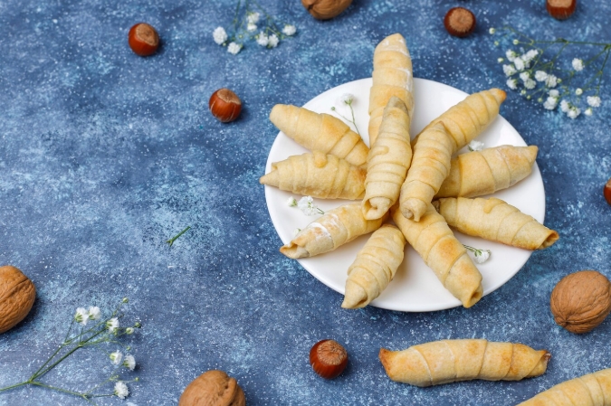 Если гости уже на подходе, а у вас к чаю готовы только кипяток и заварка, то давайте скорее готовить творожные рогалики с ореховой начинкой. Рецептом поделилась Юлия Высоцкая.