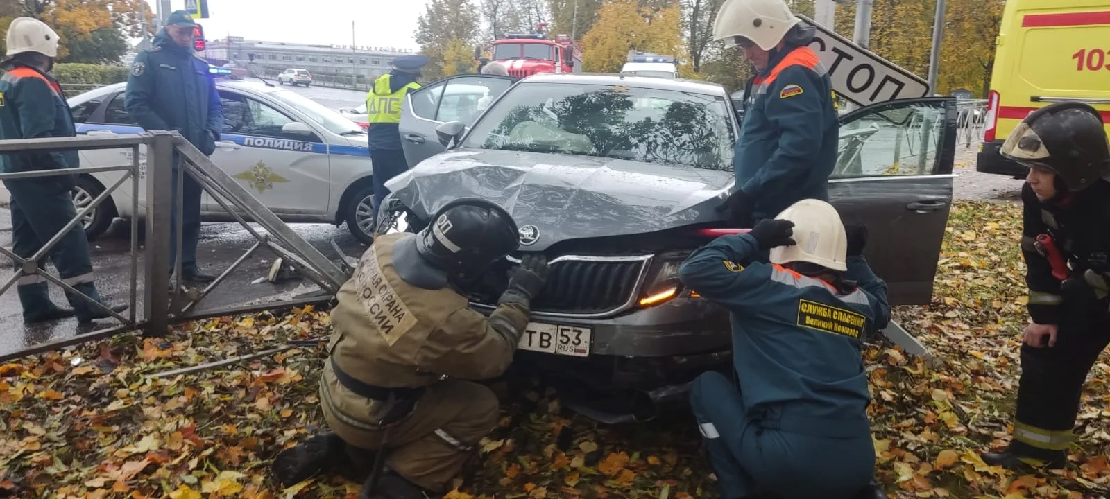 Дорожно-транспортное происшествие произошло в Великом Новгороде. Сегодня, 14 октября, на перекрестке улиц Розважа-Великая столкнулись четыре автомобиля. Спасательные службы тут же выехали на место и оказали помощь пострадавшим.