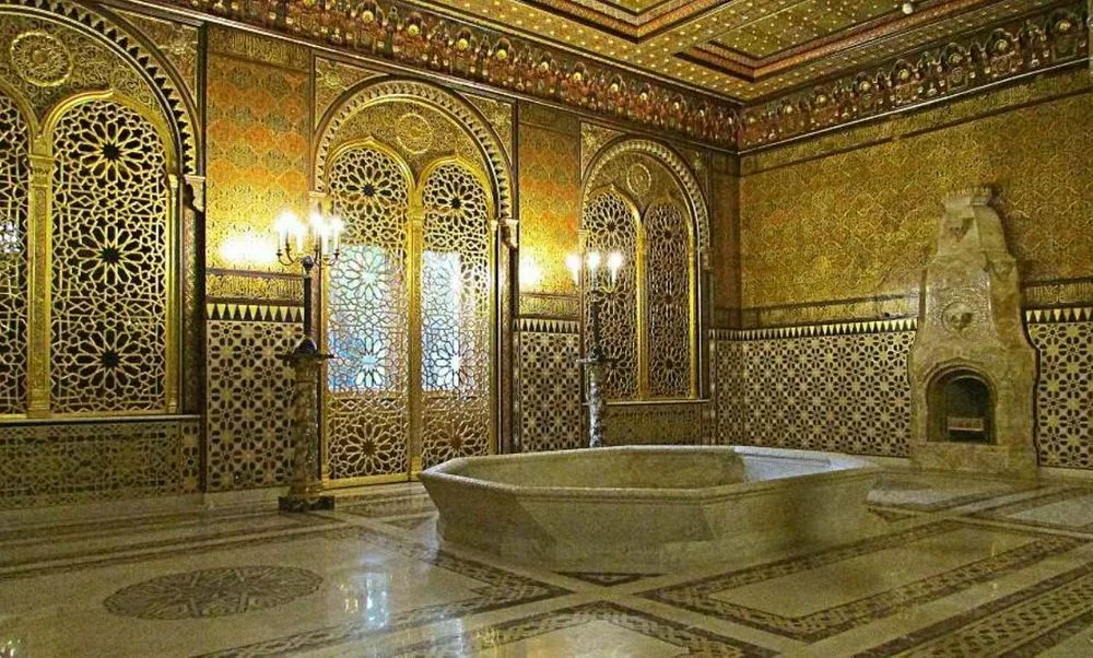 Мавританская гостиная. Это кульминация прогулки по дворцу. В те времена восточный стиль был в моде, но позволить его могли лишь самые богатые семьи. Здесь расположен и фонтан. Эта комната была любимой Феликса Юсупова.