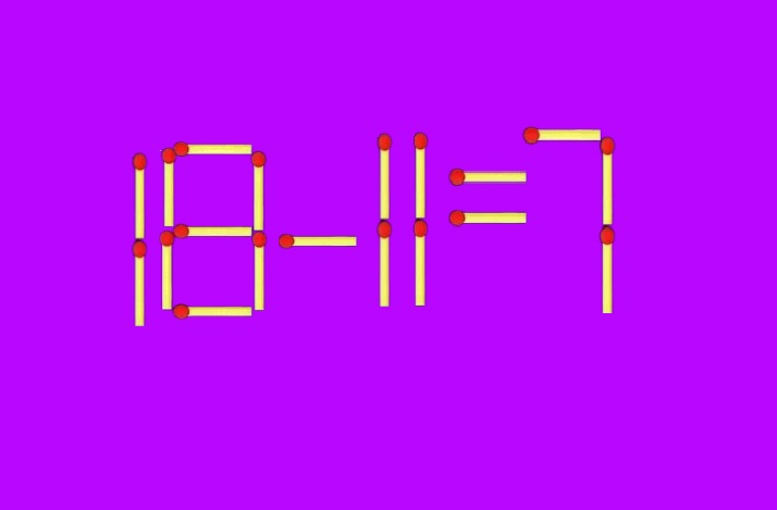 Посмотрите на пример: «18+11=1». Очевидно, что здесь не всё в порядке, но исправить ошибку можно, не прибегая к сложной арифметике. Достаточно передвинуть всего одну спичку.