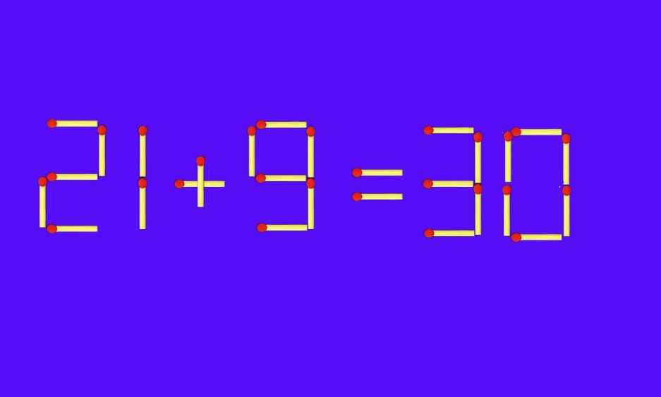 Решение кроется в семёрке. Тройку превращают в девятку, а двадцать семь — в двадцать один. В результате получается аккуратное и верное равенство: «21+9=30».