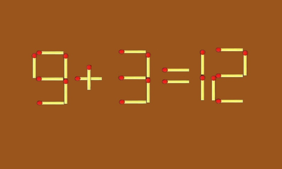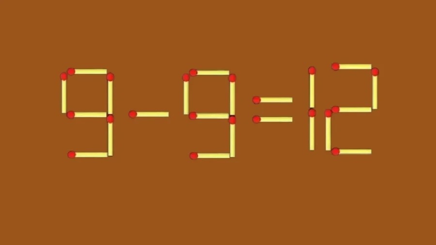 Перед вами равенство «9-9=12». Ошибка видна сразу же невооружённым глазом. Исправит его можно, но двигать можно только одну спичку.