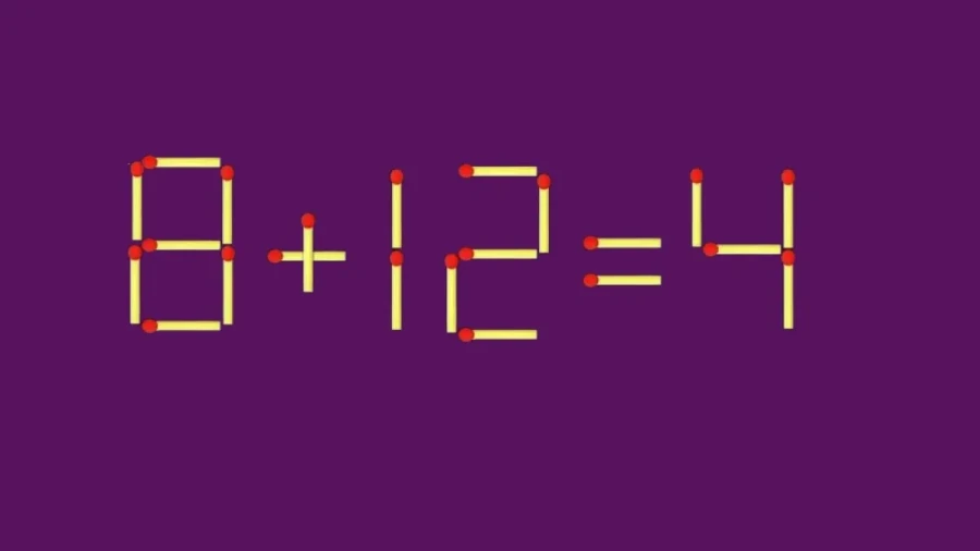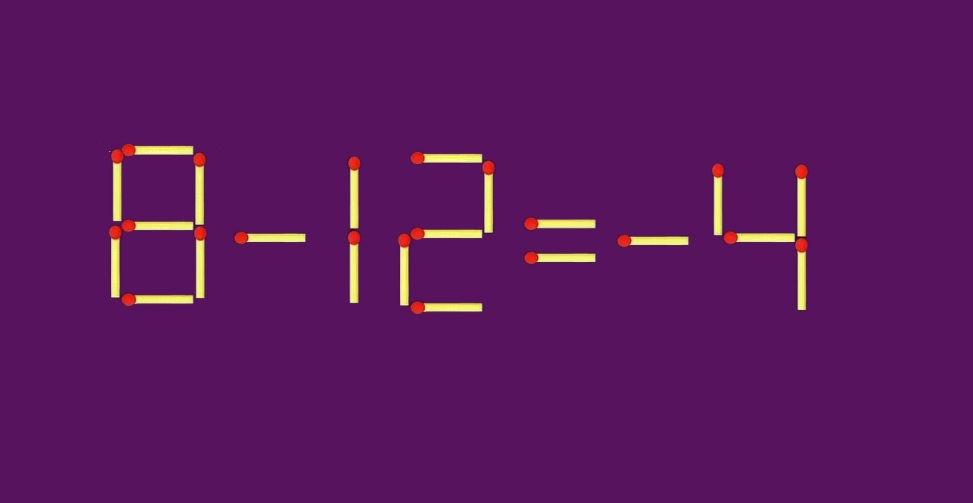 На картинке видно равенство «8+12=4», в котором допущена ошибка, и разрешается только один ход — передвинуть одну спичку.