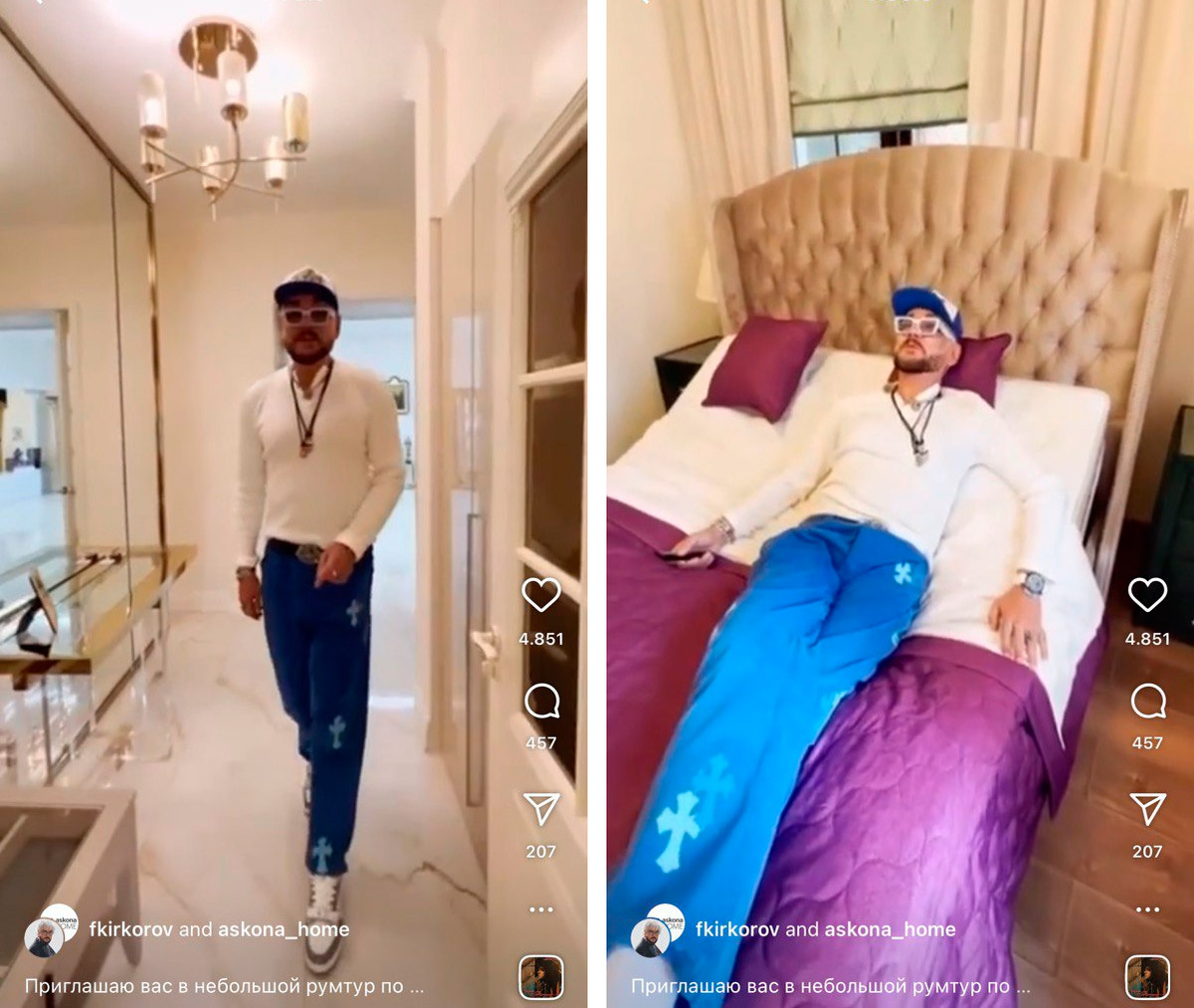 На канале „Деньги там“ рассказали, что квартира Киркорова это двухэтажный пентхаус площадью 537 метров в квадрате в Филипповском переулке.