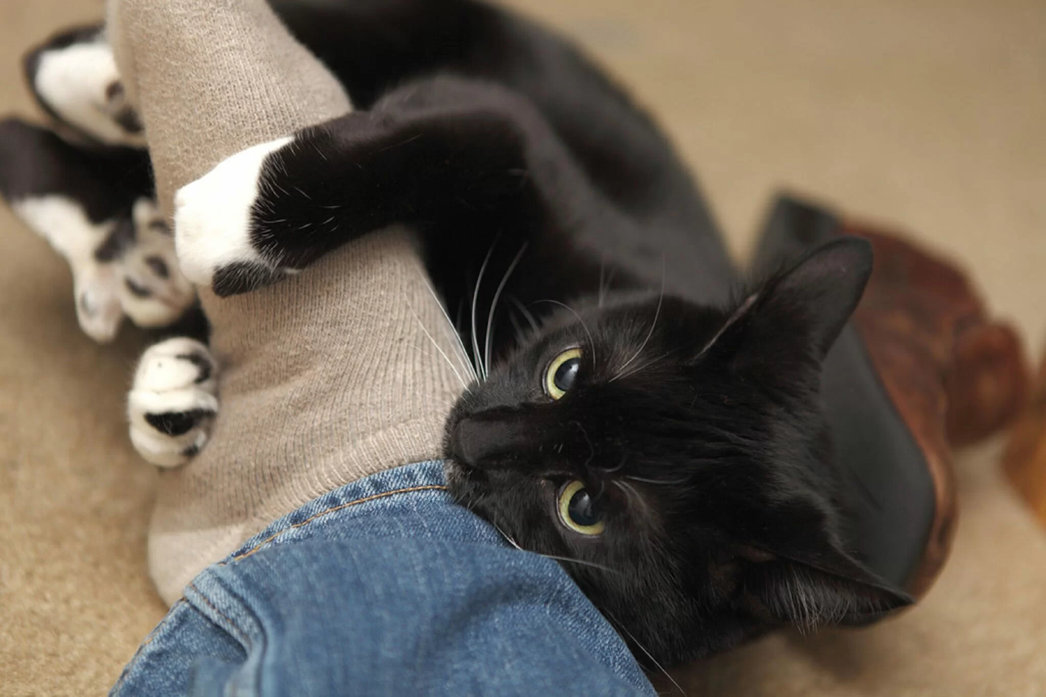 Кошка бросается на ноги и кусает: почему она так поступает и что делать