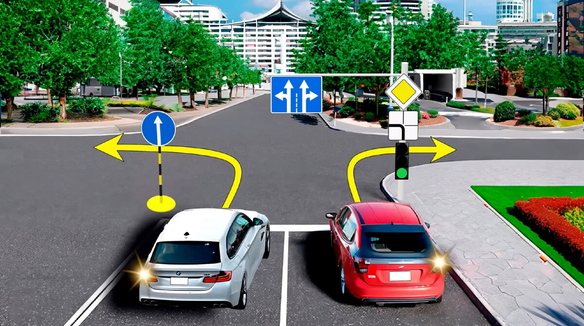 Новые ПДД: кто нарушит на перекрёстке — красный или белый автомобиль