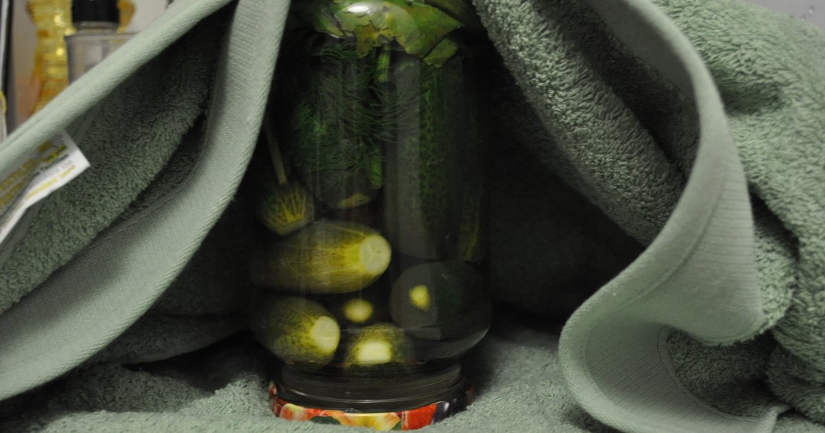 Что делают в самом конце хозяйки, когда делают заготовку? Правильно, переворачивают банки крышкой вниз и как следует их укутывают. Все это делают на автомате, не задумываясь, что это даёт. Ну, начнём с того, что так можно проверить герметичность банки. Есть шанс сразу увидеть недочёт и переделать.
