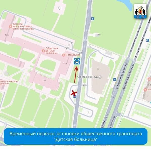 Мэрия Великого Новгорода сообщила о переносе автобусной остановки «Детская больница». Это связано с проведением земляных работ.