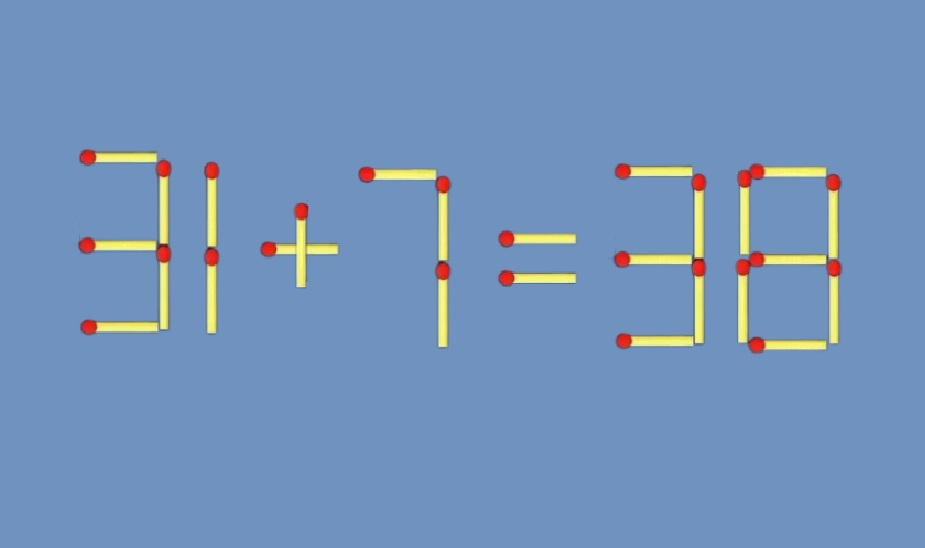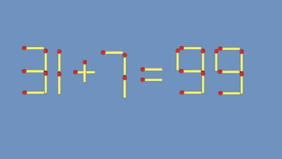 На картинке перед вами равенство «31+7=99». Очевидно, что оно составлено неверно. Исправить ошибку можно, если передвинуть всего одну спичку — больше никаких изменений вносить нельзя.