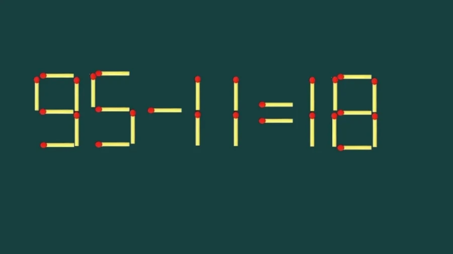 в записи 95−11=18 допущена ошибка. Разрешается передвинуть только одну спичку — остальные элементы остаются на своих местах.
