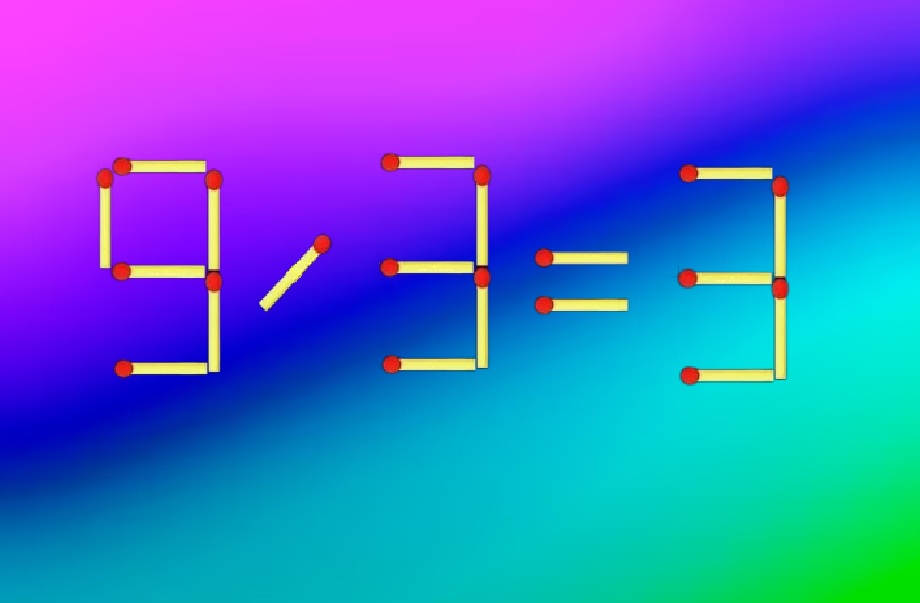 Решение требует смены операции: нужно взять спичку у первой «3» и превратить её в «9», одновременно превратив знак умножения в знак деления.