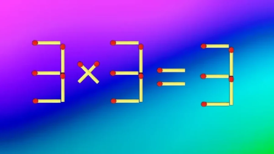 Небольшая, но коварная задача со спичками: в записи «3×3=3» допущена ошибка. Разрешается переместить только одну спичку — остальные остаются на месте.