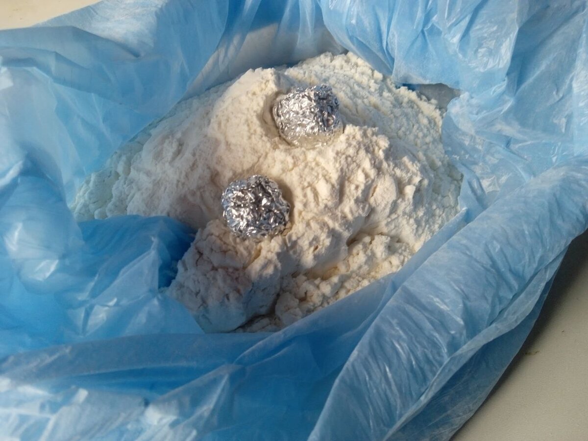 А в чем секрет? В фольге. Женщина просто делает из фольги маленькие шарики и закидывает в упаковку с мукой. И на этом все. Как это именно работает, не объясняется, но работает.
