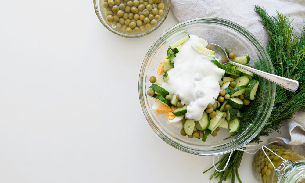 Отправляем наши ингредиенты в миску, к которым добавляем треть чайной ложки соли. Для насыщенности вкуса добавляем чёрный перец, приправу к картофелю и сушёную зелень.