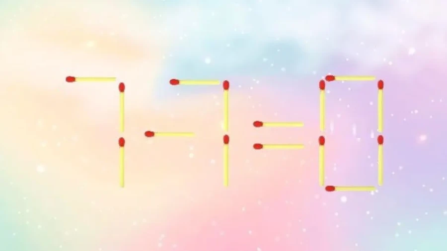 Посмотрите на изображение. В равенстве «7−1=8» допущена ошибка. Нужно переставить всего одну спичку, чтобы запись стала правильной. Попробуйте сделать это быстро — такая разминка полезна для глаз и ума.