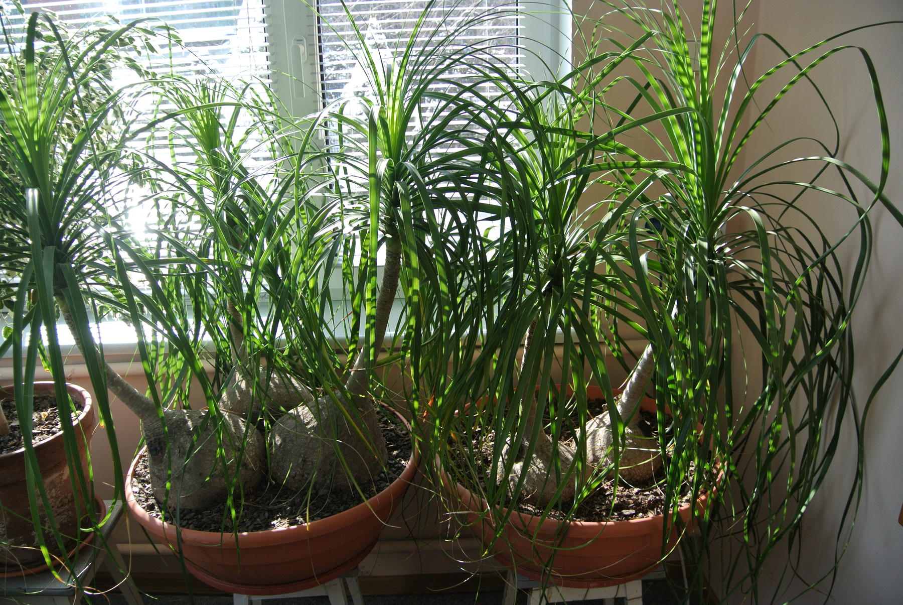 Нолина. Выглядит необычно и эффектно. Растение обладает засухоустойчивостью и не любит частого полива.