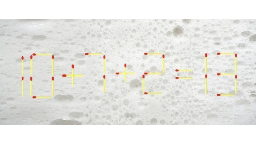 На картинке показано неверное равенство «10+7+2=13». Ошибку исправить можно, но разрешается трогать только одну спичку.