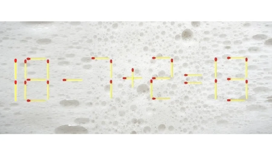 Нужен неожиданный ход: знак сложения меняют на вычитание. Для этого одну спичку используют как перекладину в «0», превращая её в «8». В результате получается корректная запись: «18-7+2=13».