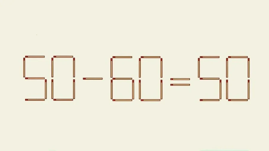 Перед вашими глазами пример «50-60=50». Ошибка очевидна, но, как ни крути, арифметика не сходится. Переставьте всего одну спичку.