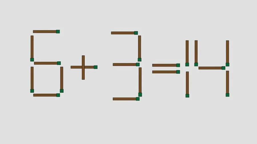 Перед вашими глазами равенство из спичек «6+3=14». Очевидно, что оно неправильное. Исправить ошибку можно всего одной перестановкой.