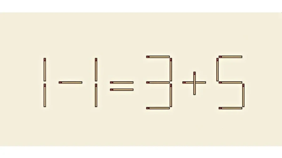 На картинке перед вашими глазами равенство «1-1=3+5», составленное из спичек. Сразу же видно, что оно неверное. Исправить ошибку можно всего одной перестановкой.