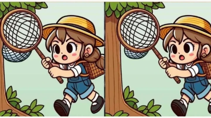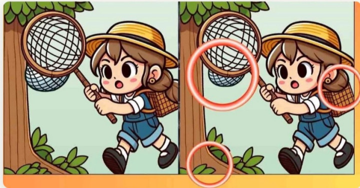 Не переживайте, без ответа мы вас, конечно, не оставим. И на картинке ниже вы сможете увидеть три отличия, которые были запрятаны в картинке с девочкой с сачком.