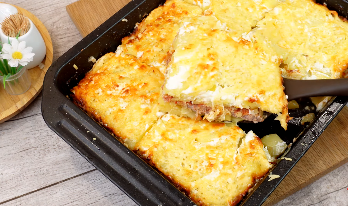 Сочная запеканка с фаршем и маринованным луком: простой рецепт на ужин
