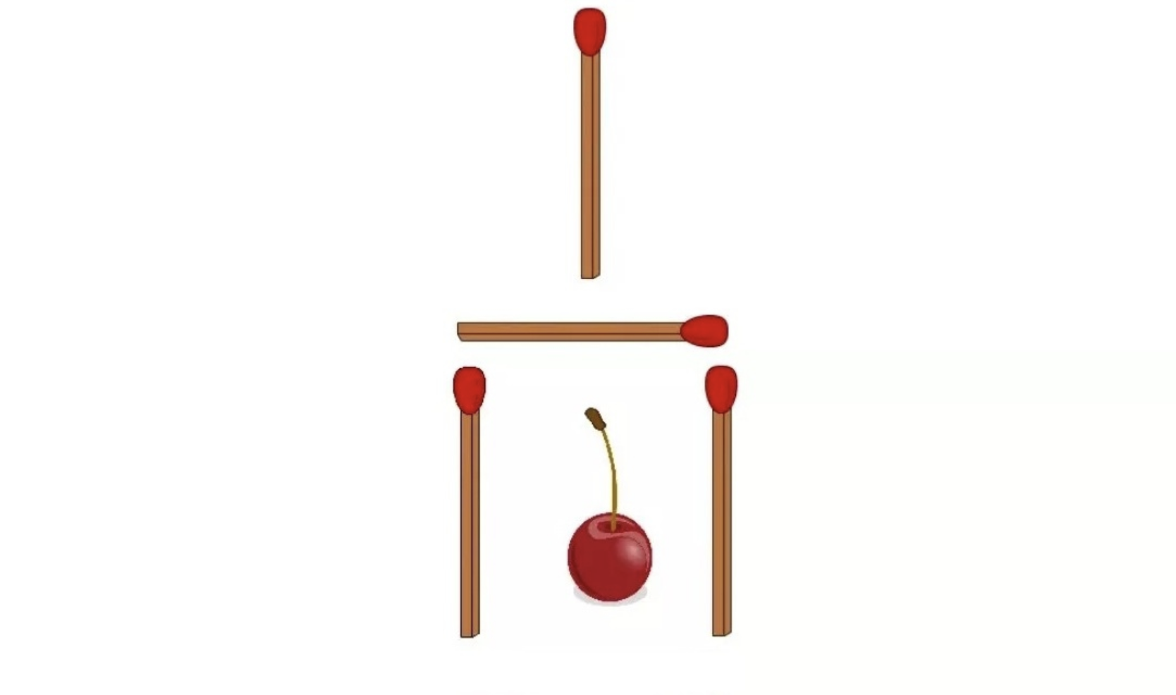 Вам надо достать вишенку из бокала, при этом никак его не повредив, а именно — не изменив его изначальной формы. Разрешено переставить только две спички, остальные должны остаться на своих местах.