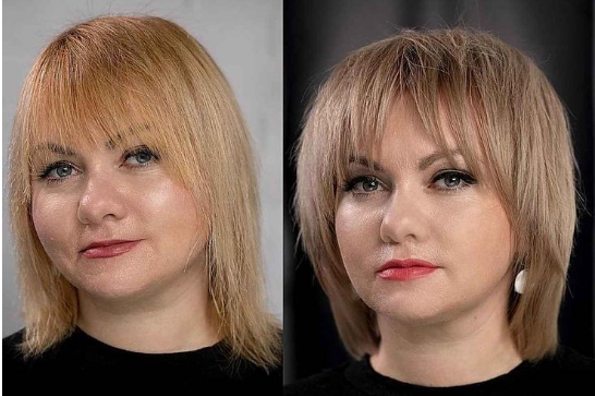 И еще внешний вид портят пушащиеся волоски у лица. Они создают хаос и подчёркивают морщинки. Спасти ситуацию может аккуратная укладка и стрижка с плотными, слегка удлиняющимися прядями у лица.