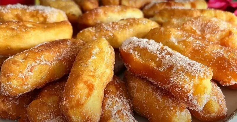 Общее тесто делим на порционные части и раскатываем в прямоугольник. После разрезаем их на полоски до 3 см шириной и отправляем на сковородку. Обжариваем на умеренном огне в течение двух минут. Подаём вместе с мёдом, сгущёнкой или вареньем.