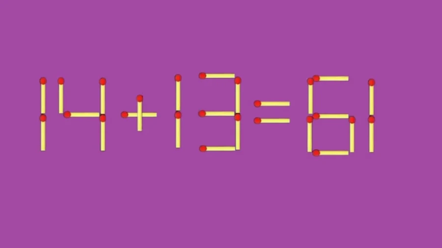 Перед вами равенство «14+13=61». В нем допустили глупейшую ошибку. Передвиньте только одну спичку и все встанет на свои места.