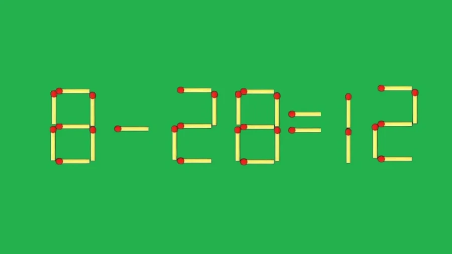 На изображении показано равенство «8-28=12», которое неверно. Исправить его можно, переместив всего одну спичку.