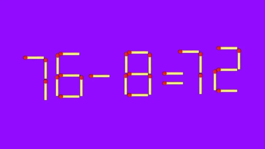 Перед вами равенство «76-8=72», которое на первый взгляд неверно. С одной стороны кажется, что все сложно. Хотя, на самом деле, достаточно переставит лишь одну спичку.