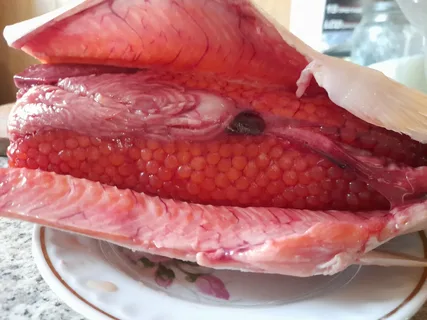 Блогер утверждает, что его метод работает. Так он выбрал горбушу с икрой. Её оказалось в рыбе 100 грамм.