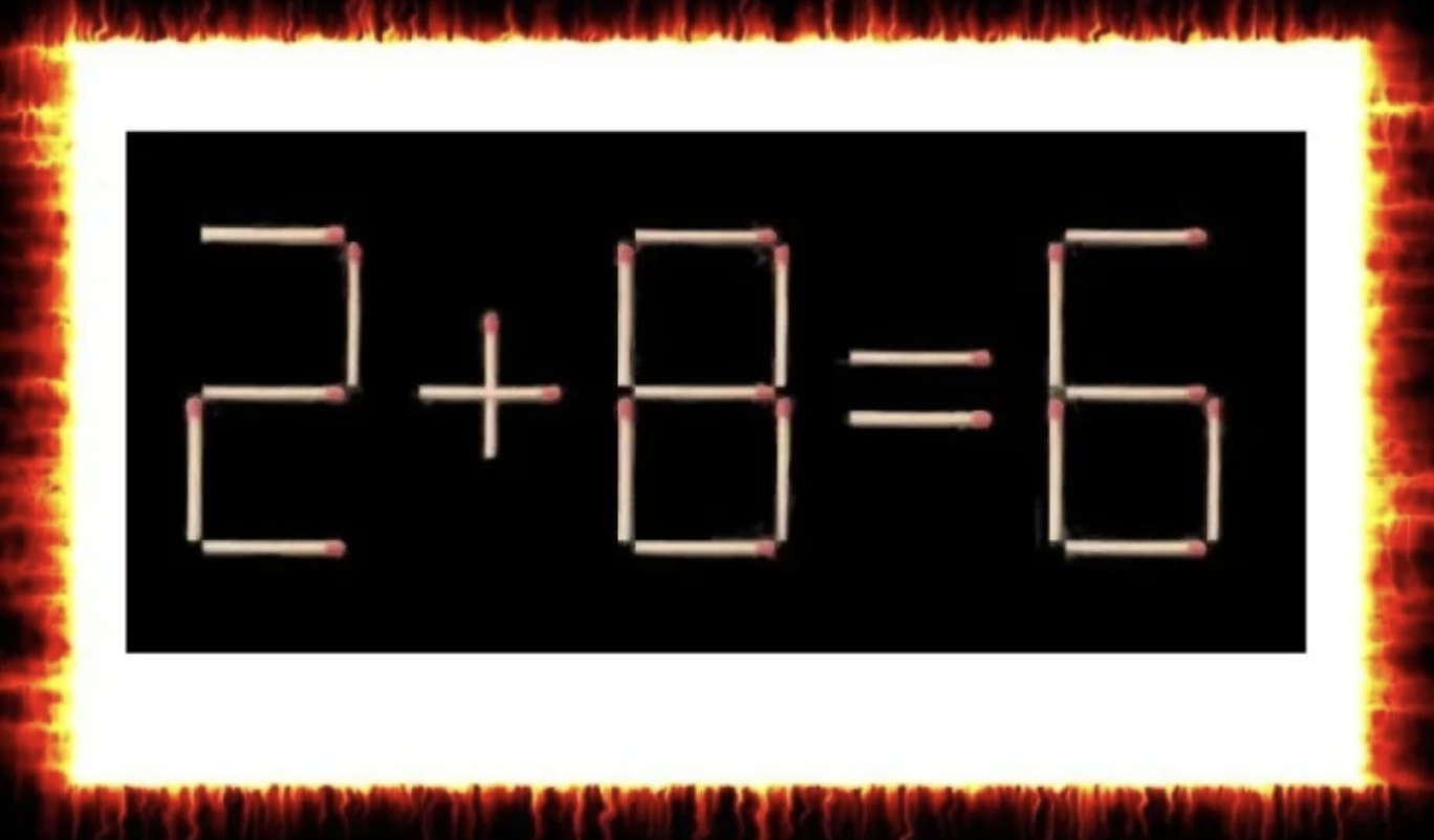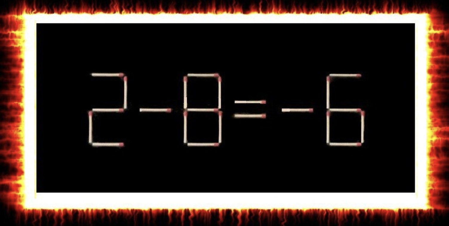 Посмотрите на картинку, на ней нарисован пример «2-8=-6». Но ведь пример математически неправильный! В этом и заключается проблема. Вам надо переложить одну спичку так, чтобы это равенство стало верным.