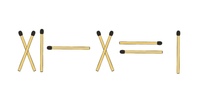 На картинке показано равенство с римскими цифрами. В нём есть ошибка: достаточно переставить одну спичку, и уравнение станет правильным.