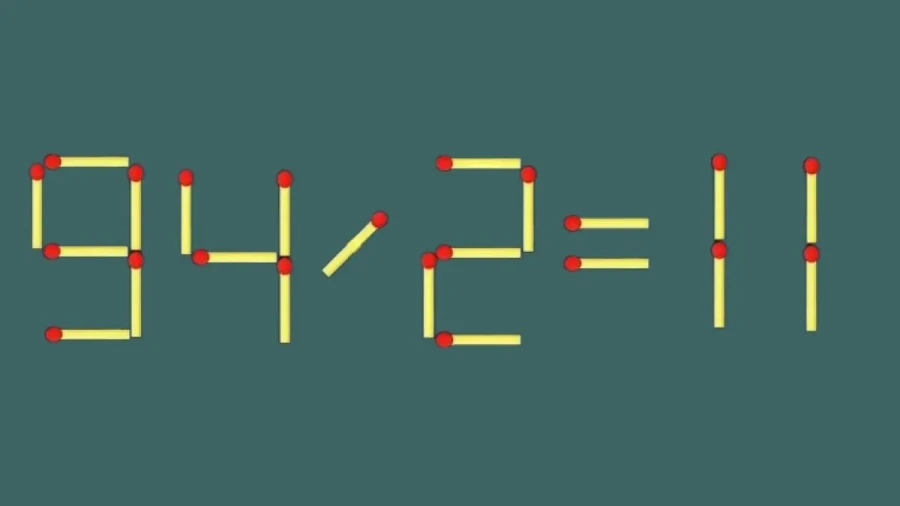 Равенство «94/2=11» очевидно, что неправильно. Причём, даже ошибка какая-то глупая. Чтобы получить верный пример вам нужно передвинуть одну спичку и больше ничего не менять.