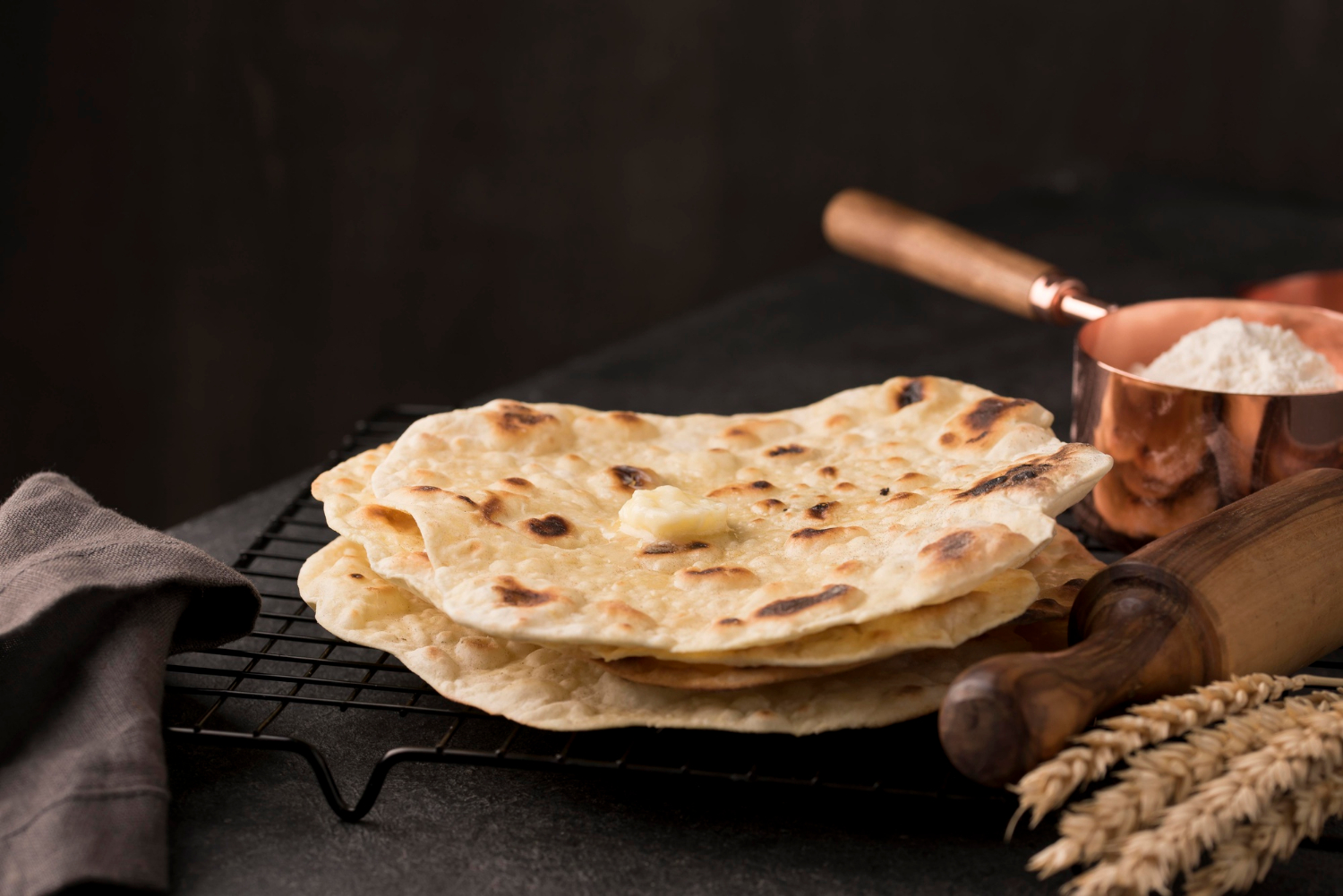 Готовятся такие лепешки на сухой сковородке без масла. Нужно замесить тесто из 500 г муки, 300 мл воды, 1 яйца и щепотки соли. И дать ему отдохнуть 30 минут.