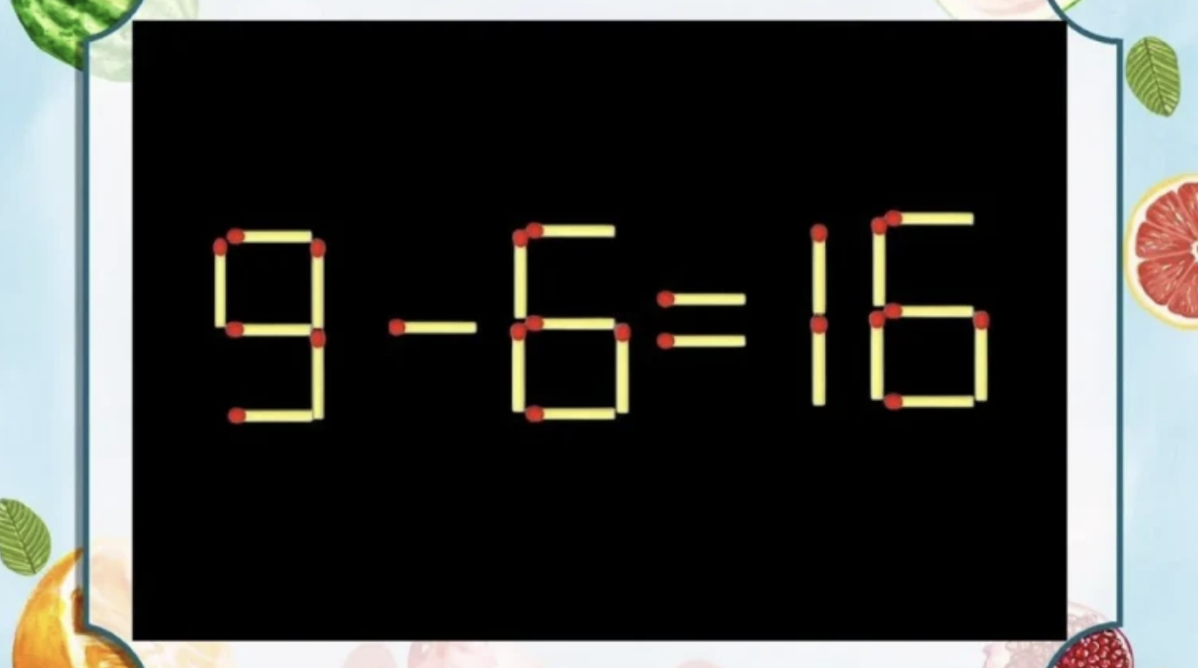 Раньше, кстати, подобные задачки выкладывали из палочек или реальных спичек, сейчас же их делают в основном в цифровом виде. На иллюстрации представлен пример «9-6=16».