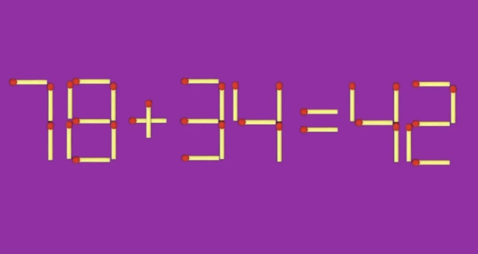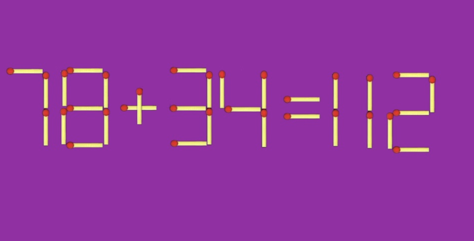 Перед вами пример, выложенный из спичек. Его специально сделали неверным, так как ваша задача — переставить одну деталь так, чтобы это равенство стало математически верным. Соберите силы в кулак и приступайте. Правильный ответ вы сможете найти на картинке ниже.