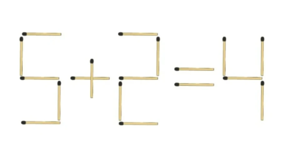 В задачке со спичками «5+2=4» сразу видно глупейшую ошибку. Рука сразу же тянется менять цифры. По факту же, решение лежит на поверхности. Нужно переставить всего лишь одну спичку, чтобы получился верный ответ