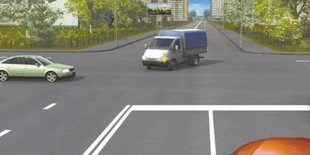 Даже на зелёный надо соблюдать очередь Вы подъехали к перекрёстку, и перед вами уже горит жёлтый. Правда посередине перекрёстка налево поворачивает грузовик, а легковое авто проезжает прямо....