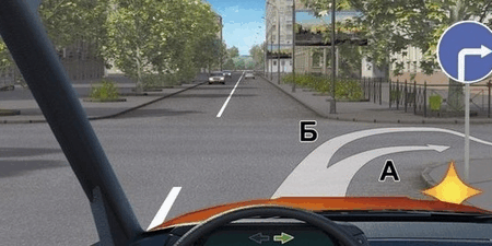 А вы на экзамене с таким вопросом справитесь? При повороте направо, а, тем более, под знаком, есть чёткие правила. Они строго прописаны в ПДД и обязательные для всех....
